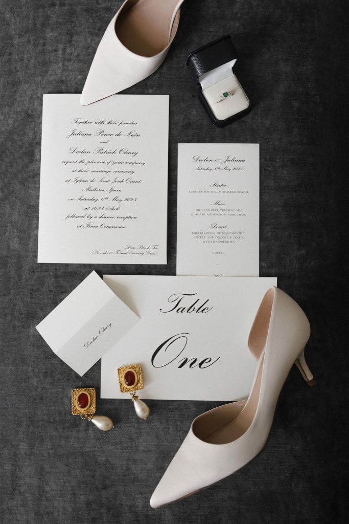 Juliana and Declan's beautiful black-tie wedding at Finca Comassema showed us just how elegant a Mallorca wedding can be. The day began with a beautiful ceremony at a church in Sóller, in the town's charming center. Following the ceremony, the celebration moved to the heart of the Tramuntana mountains, where Finca Comassema wowed guests with its stunning views.