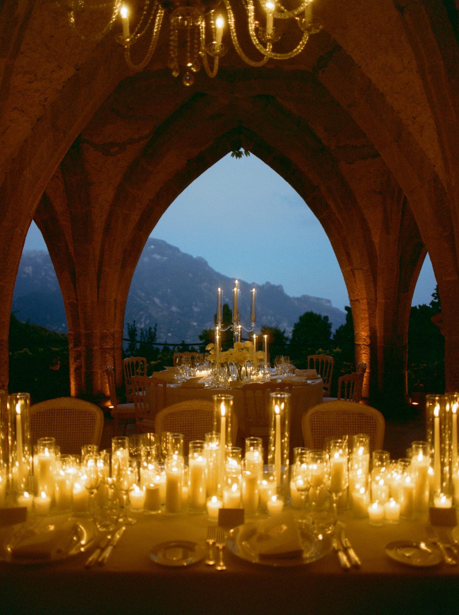 Cada instante de esta boda fue mágico, desde una impresionante ceremonia frente a la fachada del lugar hasta una cena al aire libre bajo el cielo nocturno.